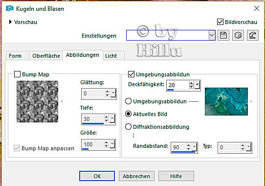 Effekte - Kunsteffekte - Kugeln und Blasen - nacheinander die folgenden Einstellungen anwählen - dann auf OK klicken :