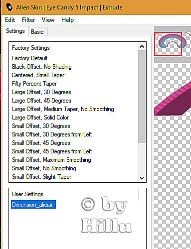 Effekte - Plugins - Alien Skin Eye Candy 5: Impact - Extrude - User Settings - suche Dimension_aliciar: