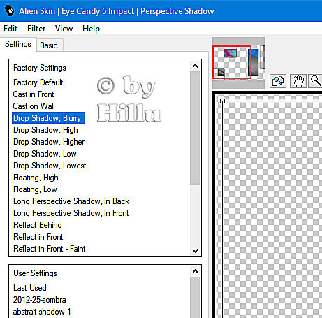 Effekte - Plugins - Alien Skin Eye Candy 5: Impact - Perspective Shadow - Factors Settings Drop Shadow, Blurry :