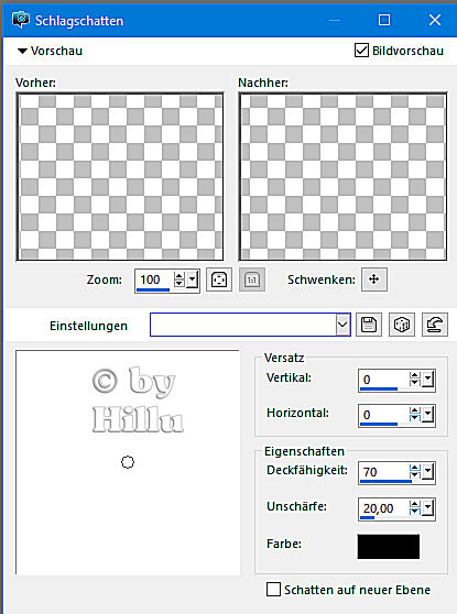Effekte - 3D Effekte - Schlagschatten - wie eingestellt.
