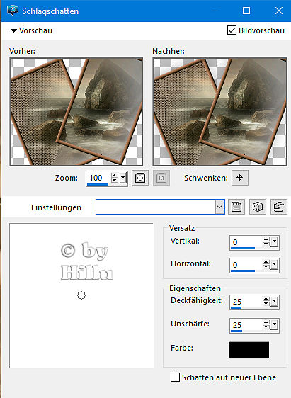 Effekte - 3D Effekte - Schlagschatten - wie eingestellt - nur Deckfähigkeit auf 30 stellen.